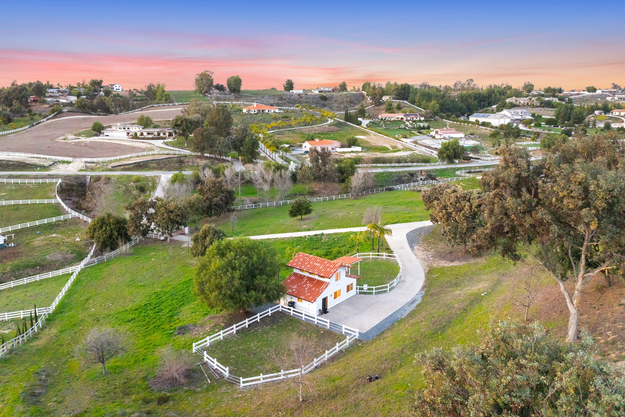 This secluded luxury rental home is located on a gated 5-acre ranchette in the beautiful Temecula Valley wine country. 🍷2 miles from 25+ wineries 🍽️ 2 miles from 30+ restaurants 📍1 mile from town Newly remodeled with high-end finishes; this 2bd/2ba modern Spanish casita is one of a kind. Enjoy views of the vineyards, complete privacy, and beautiful sunsets from your own kitchen window. Ideal for equestrians with access to trails, 2 paddocks available to rent, and 3 open acres for your horse to graze. $3,400/mo